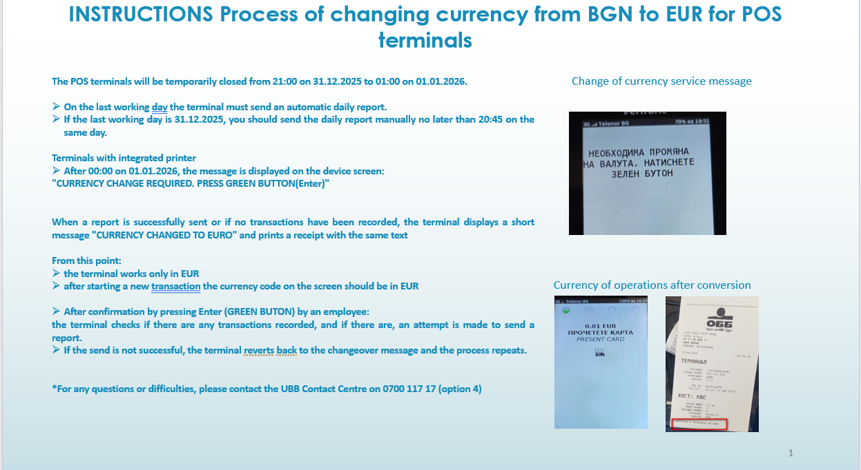 2. As of 01.01.2026 there will be no technical possibility to process refunds of cardholder transactions made via POS terminal in BGN.