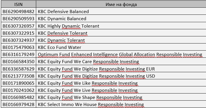 Съобщение за промяна в Проспекти на фондовете на KBC Asset Management, с произход Белгия